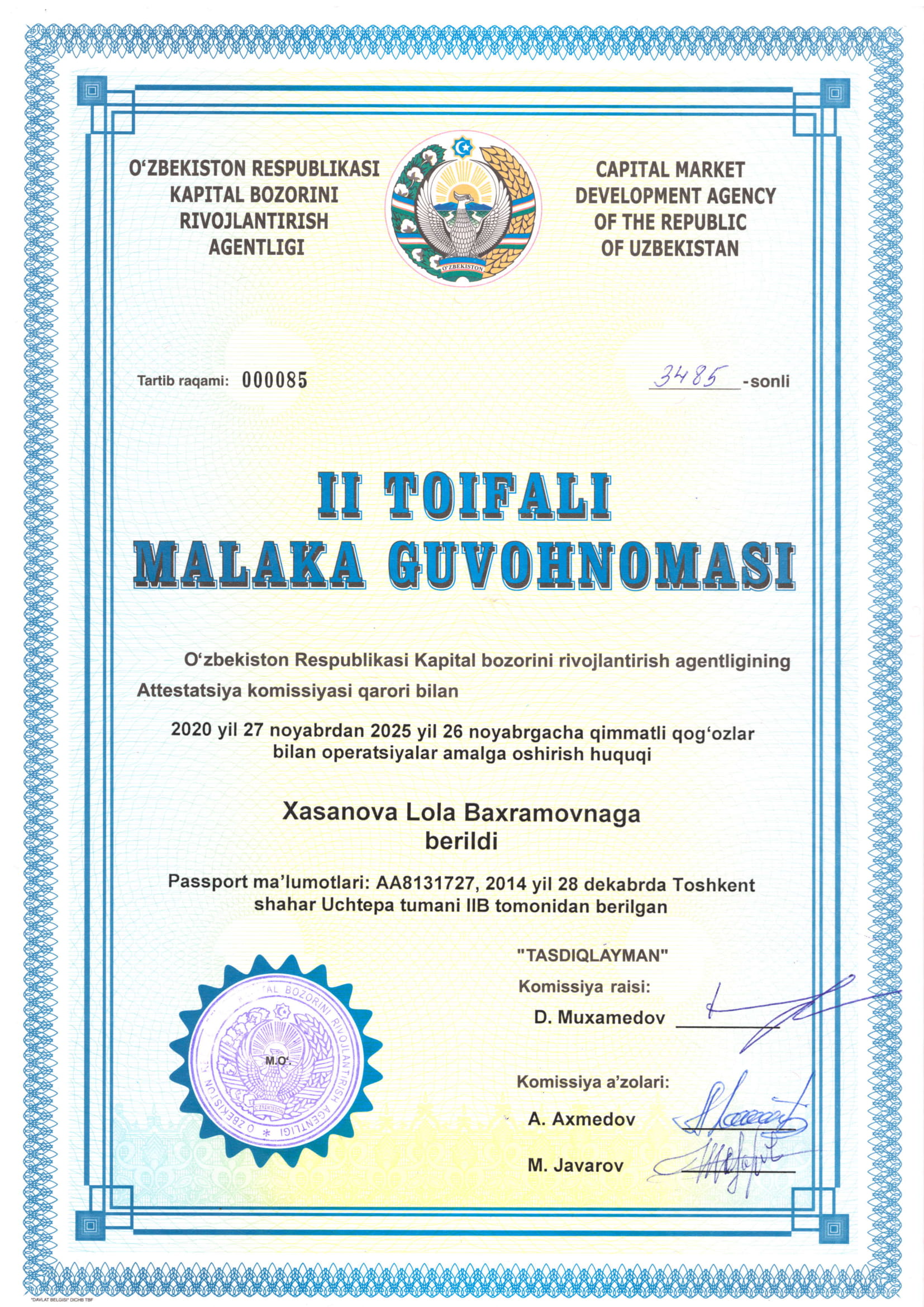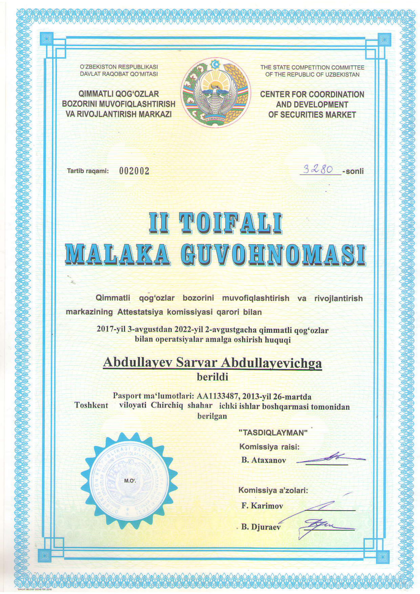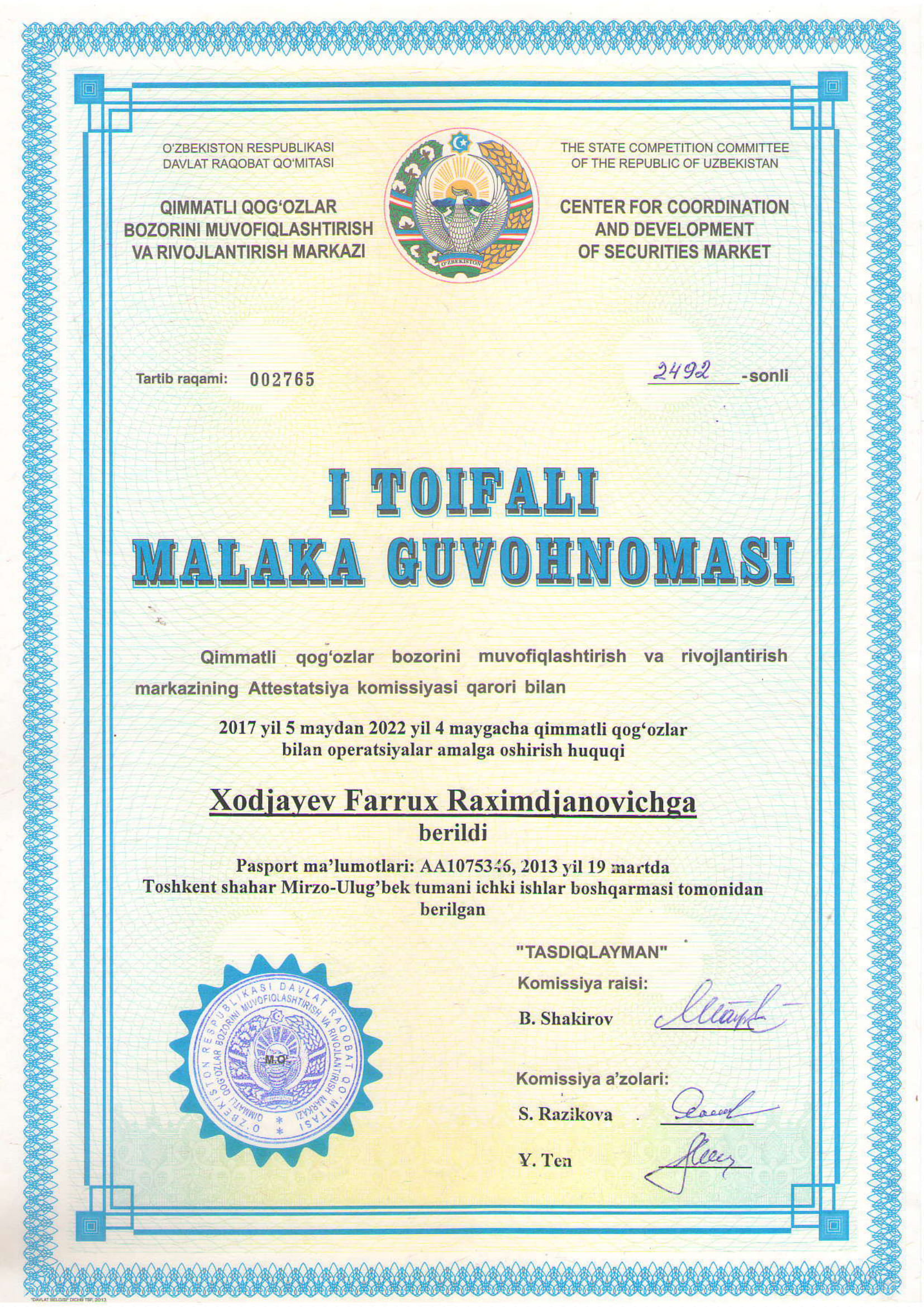 ООО «KAPITAL-DEPOZIT» был основан как депозитарий ценных бумаг во главе с Фаррух Ходжаевым